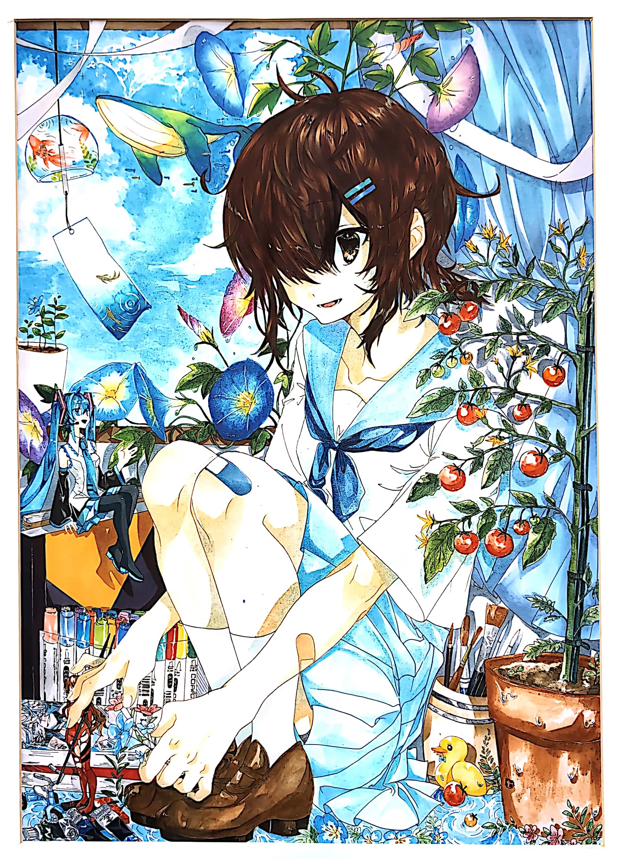 「 好きな物(自画像) 」 石垣市立石垣第二中学校 平良 未菜(3年) |