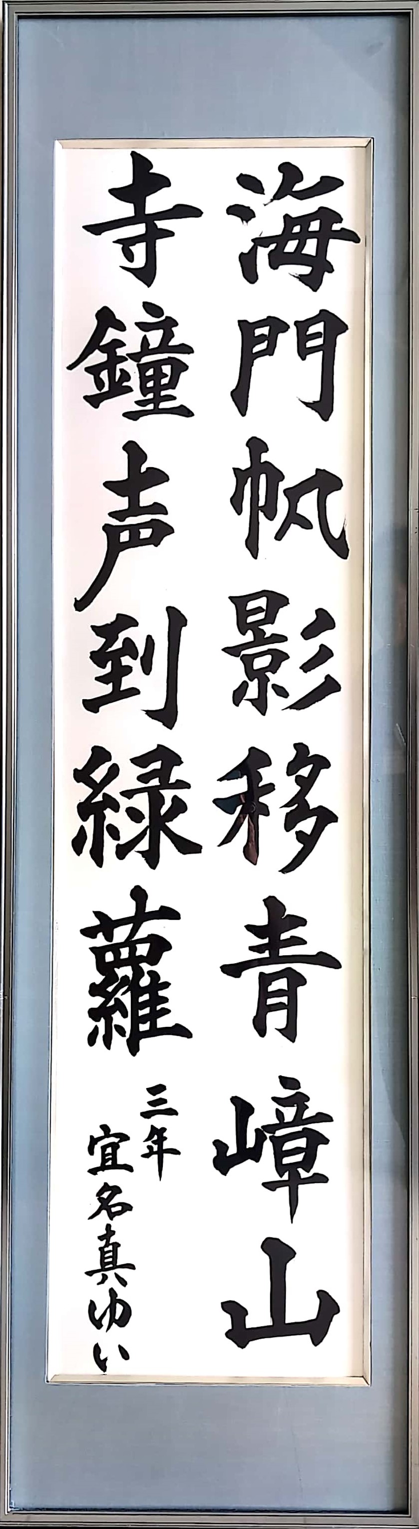 | 「海門帆影移青山 寺鐘声到緑蘿」 南風原町立南風原中学校 宜名真 ゆい(3年) |