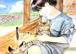 | 「 猫と妹 」 沖縄市立越来中学校 2年 真栄城心音 |